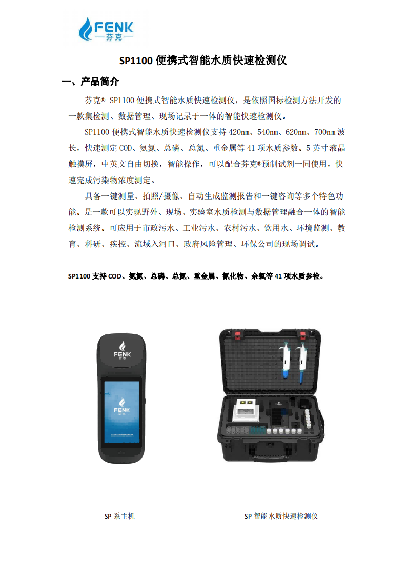 產(chǎn)品標題:SP-1100 便攜式智能水質(zhì)快速檢測儀