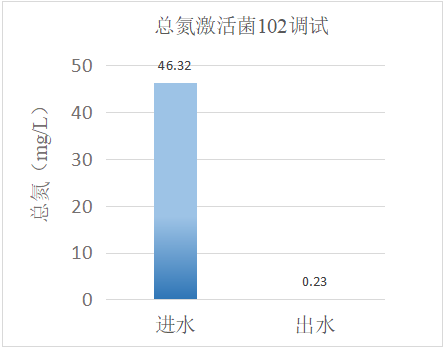 我司技術(shù)人員通過現(xiàn)場評估,發(fā)現(xiàn)生化系統(tǒng)總氮去除效率有限,生化溫度30℃,系統(tǒng)內(nèi)有效生物量不足,導(dǎo)致系統(tǒng)抗沖擊能力差,出水總氮難以達(dá)標(biāo)。通過技術(shù)人員現(xiàn)場投加復(fù)合碳源101和激活菌102,再配合現(xiàn)場生化系統(tǒng)運(yùn)行條件控制、優(yōu)化,達(dá)到如下效果: