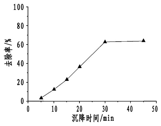 由上圖可知,在前30 min內(nèi),總磷去除率隨著沉降時間的延長而增加,但當(dāng)沉降時間大于30 min后,隨著時間的延長,去除率幾乎沒有變化,說明在30 min時,沉淀絮體已經(jīng)基本沉淀完成。溶液沉降的目的是使懸浮的污染顆粒物沉降到溶液底部。因此當(dāng)溶液中懸浮物沉降完全的時候,繼續(xù)靜置將不會再有明顯效果。結(jié)合實(shí)際生產(chǎn)需要,沉降的最佳時間為30 min。