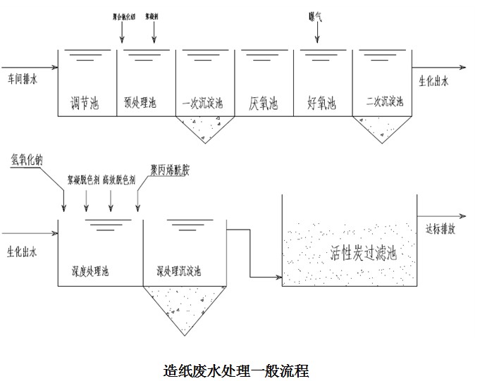 造紙廢水處理應著重于提高循環用水率,減少用水量和廢水排放量,同時也應積極探索各種可靠、經濟和能夠充分利用廢水中有用資源的廢水處理方法。例如:浮法可回收白水中纖維性固體物質,回收率可達95%,澄清水可回用;燃燒廢水處理法可回收黑水中氫氧化納、硫化鈉、硫酸鈉以及同有機物結合的其他鈉鹽。中和廢水處理法調節廢水pH值;混凝沉淀或氣浮可去除廢水中大顆粒SS;化學沉淀法可脫色;生物處理法可去除BOD、COD,對牛皮紙廢水較有效。此外,國內外也有采用反滲透、超過濾、電滲析等造紙廢水處理方法。